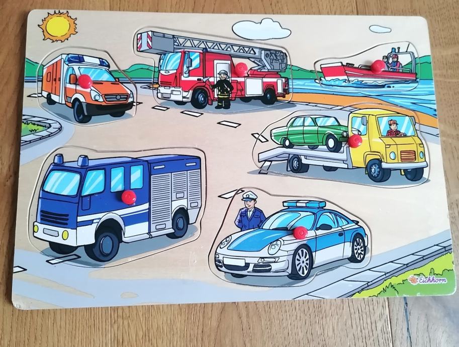 Prodam leseni sestavljanki Eichhorn, motiv kmetija in vozila.