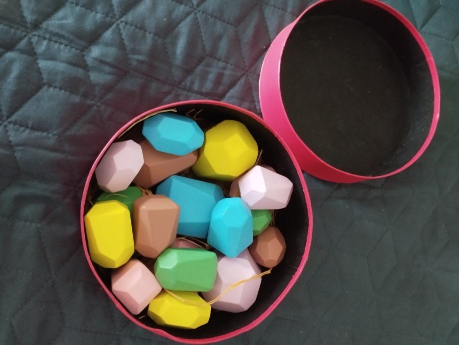 Didaktična igra, leseni "kamni", za delanje stolpov, po Montessori metodi. Brezhibno, kot novi so ostali. Cena je zadnja.