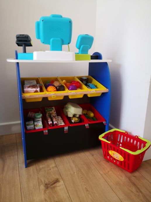 Prodamo lepo ohranjeno otroško tržnico Toylino z blagajno, streho in dodatki za igro.