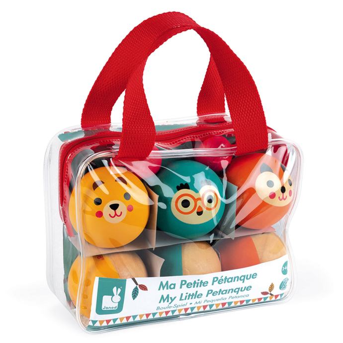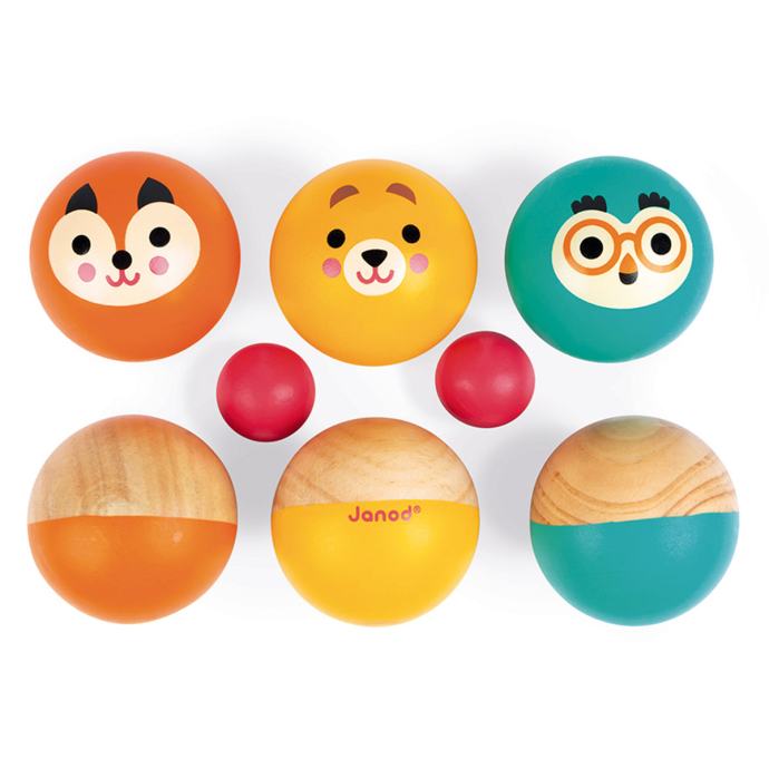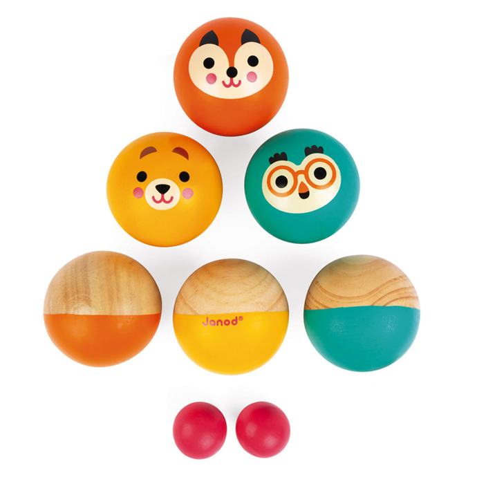 Popolna igra za sončne dni na travi ali v parku. Otroški leseni balinarski set s kroglami Janod, z ljubkimi motivi živalic bo zagotovo navdušil vaše malčke in jih učil natančnosti in razvijal fino motoriko.