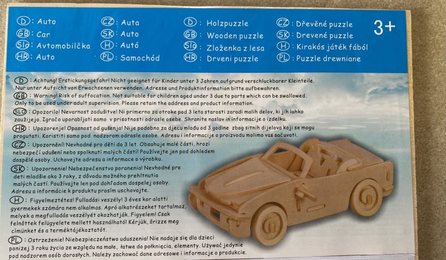 Prodam NOVO leseno sestavljanko AVTO - 3D maketa KABRIOLET (puzzle), s katero lahko z nekaj truda sestavite lesen kabrio avtomobilček :)