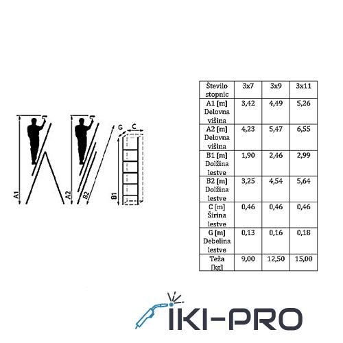 • Aluminijasta lestev 3x11 ustreza standardu EN 131 in je certificirana s strani TÜV Rheinland, kar potrjuje njeno kakovost in varnost.