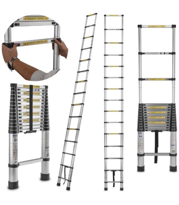 • Opremljena z zaklepnimi mehanizmi, ki zadržijo dele lestve na mestu in zagotavljajo stabilnost in varnost pri uporabi lestve