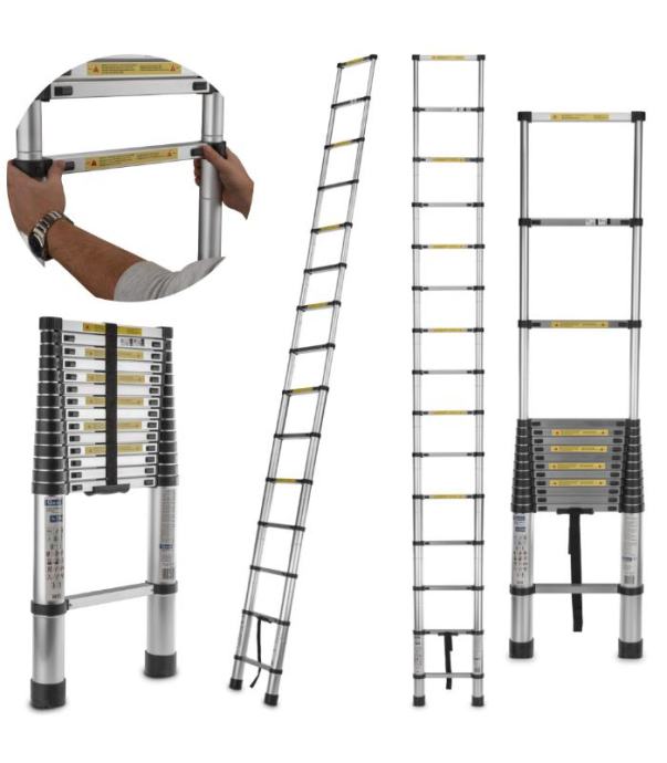 • Opremljena z zaklepnimi mehanizmi, ki zadržijo dele lestve na mestu in zagotavljajo stabilnost in varnost pri uporabi lestve