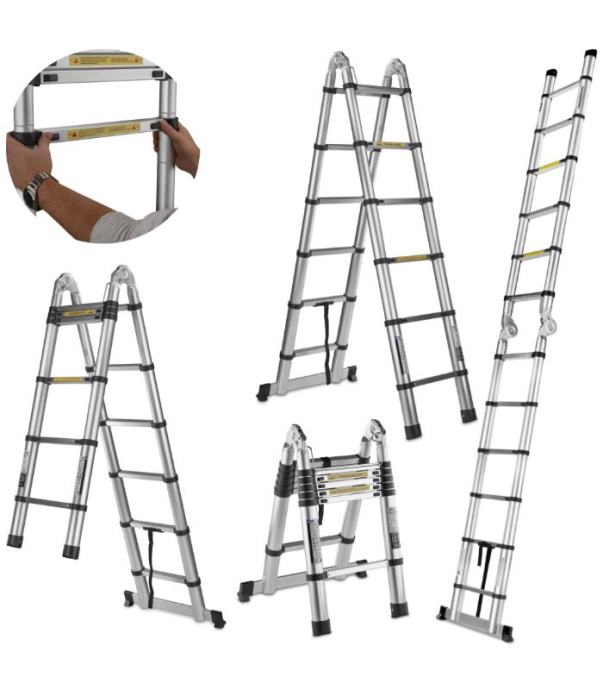 • Sestavljena iz delov, ki jih je mogoče izvleči ali umakniti, kar vam omogoča prilagajanje dolžine lestve