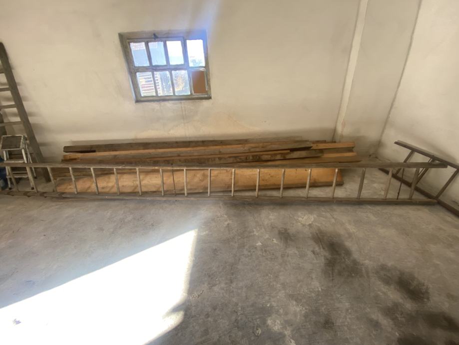 Rabljena lesena lestev 690 cm dolžine.