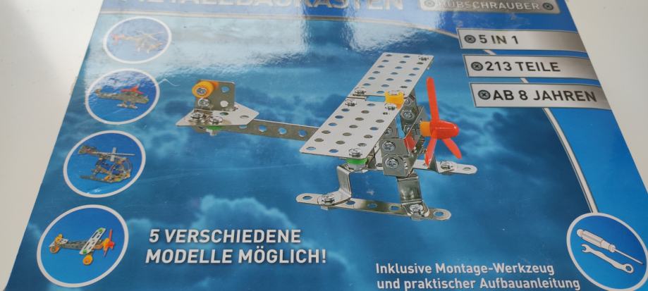 Otrok si lahko sam sestavi 5 različnih modelov iz kovine. Z orodjem in navodili.