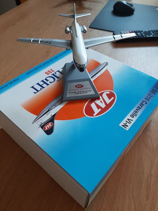 Model letala Caravelle v barvah JAT z imemom mesta Dubrovnik. Merilo 1:200. Original je pred muzejem letalstva v Beogradu. Model je v original embalaži.