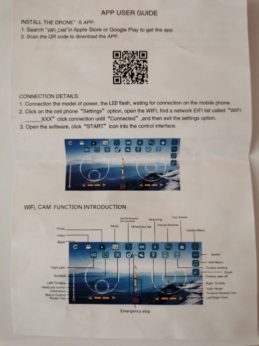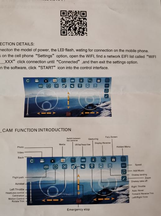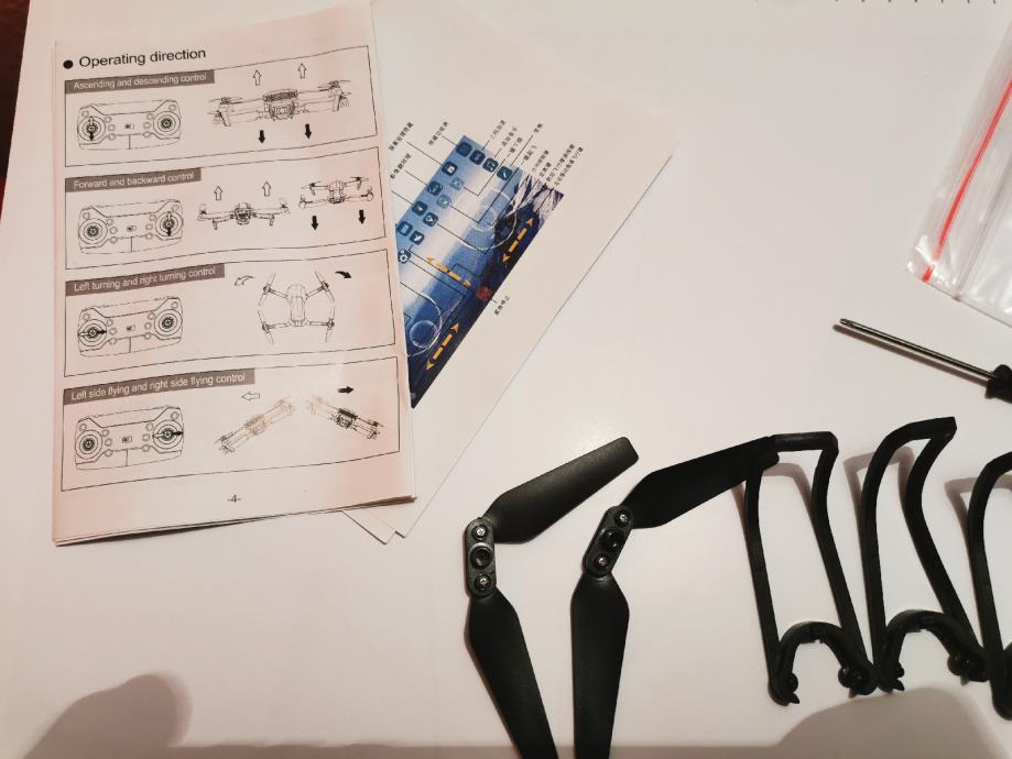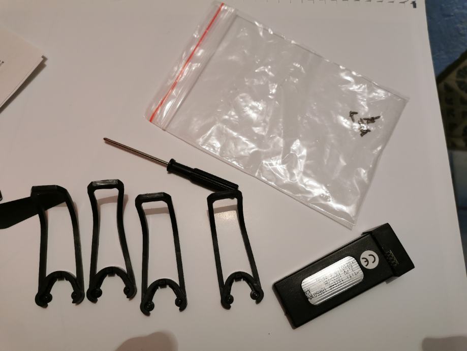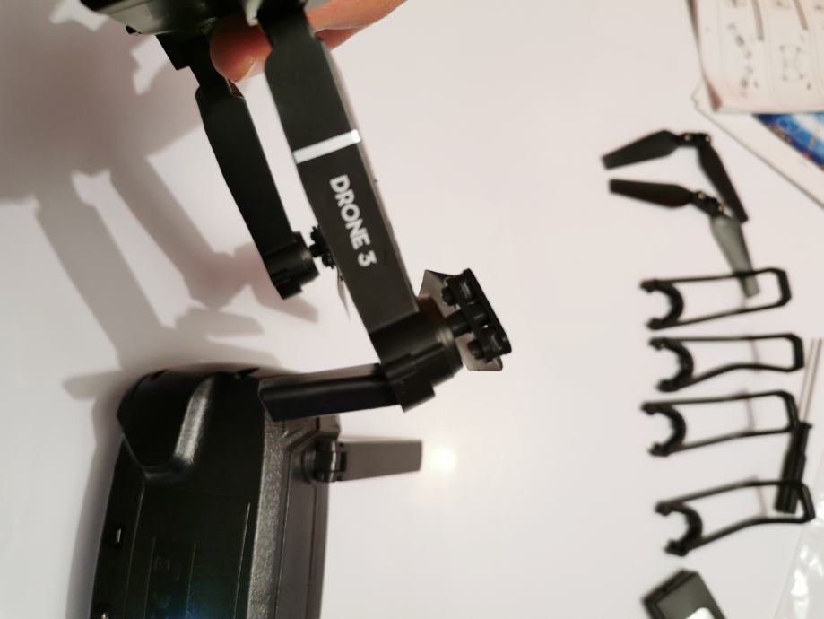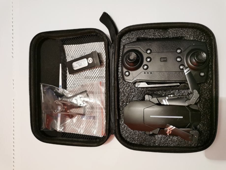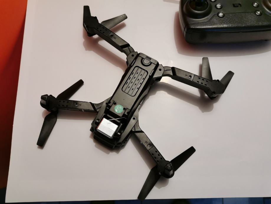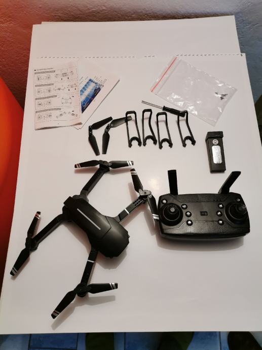 Prodamo enkrat rabljen dron. Možnost povezave na mobitel. Na drobu je tudi kamera. Poleg je torbica, rezervna baterija, zaščita za propelerje dva rezervna propelerja ter orodje.