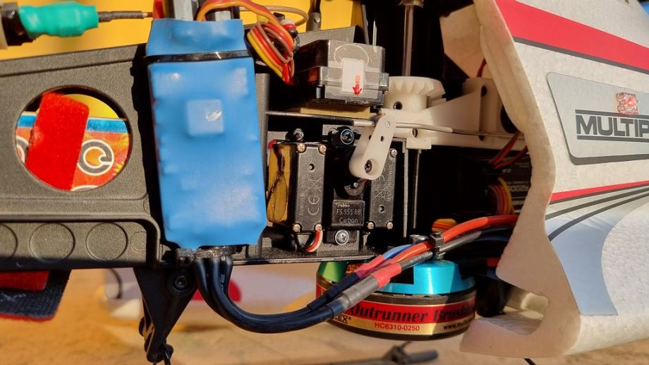 V Modelu sta vgrajena digitalna servo motorja Futaba S3150 (https://www.der-schweighofer.com/Servo-Futaba-S-3150-Digital-a54682) in servo Futaba FS 555 BB Carbon. Regulator je Foxy. Skupaj s helikopterjem prodam še ogromno originalnih nadomestnih delov, praktično za sestavo še enega helikopterja, dodaten trup in dodaten motor. Priložim tudi originalna navodila ter vso pripadajočo dokumentacijo. Po dogovoru lahko prodam tudi baterijo.