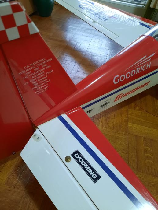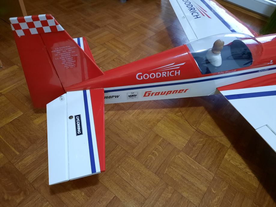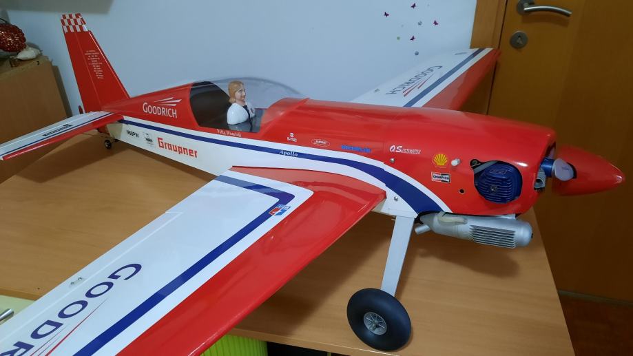 prodam rc letalo model extra 300s. Letalo je starejše vendar novo, sestavljeno in nikoli leteno. Poganja ga nov motor na metanol O.S. 65 LA (cca 10ccm prostornine). Razpon kril je 1600 mm. Vgrajeni so vsi servomotorji in starejsi sprejemnik.