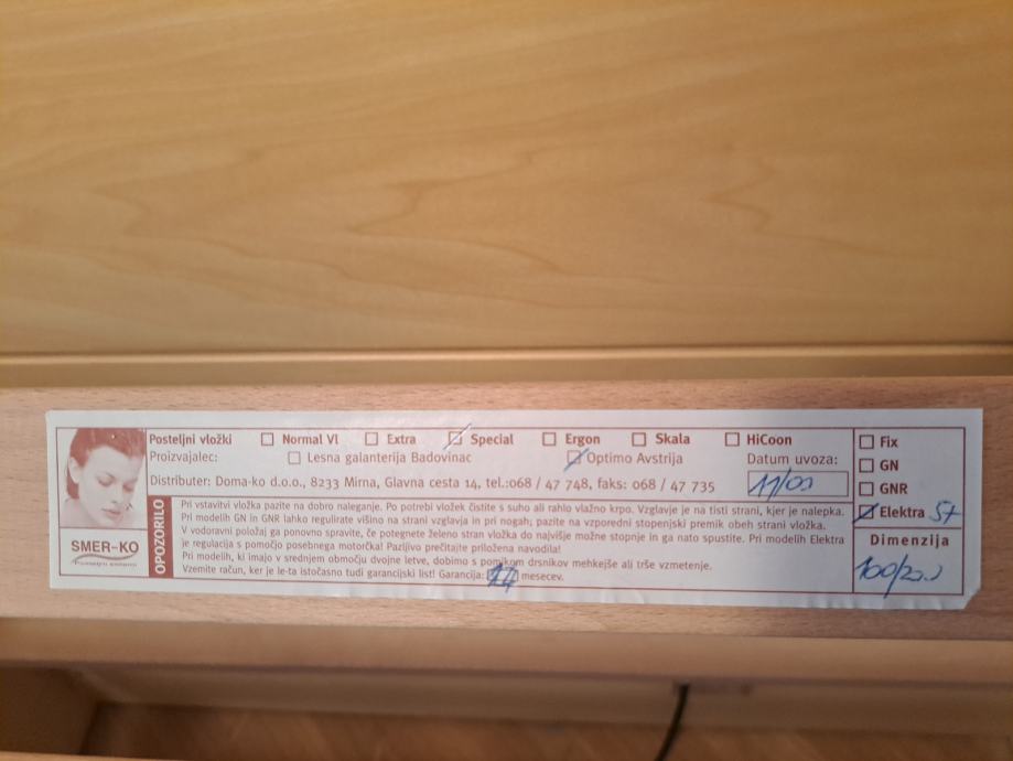 Okvir je narejen iz vezanega lesa (2 cm), višina posteljnega poda pa je 5,5 cm.