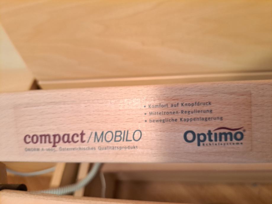 Posteljni pod Optimo COMPAKT MOBILO je električno nastavljiv pod, ki ima 28 gibljivo vpetih vzmetnih letev. Prožne prečne letvice so vpete v elastične kape in na ta način je zagotovljena udobnost ter maksimalna podpora in prilagajanje anatomiji telesa. Letvam v ledvenem predelu so dodani drsniki, ki omogočajo nastavitev stopnje trdote.
