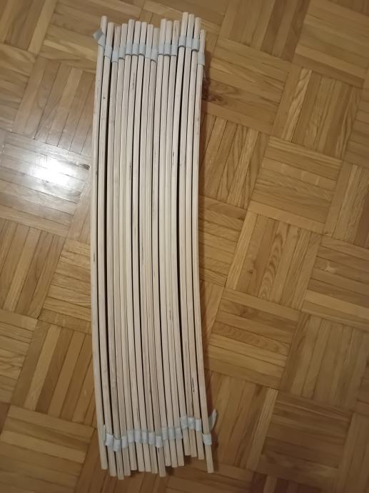 Širina letvic cca 6 cm, debelina 1 cm-vezana plošča. Zelo trdno.