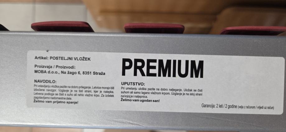 Vložek je bil kupljen predlani vendar nikoli v uporabi tako da je praktično nov. Posteljni pod PREMIUM izdeluje znan slovenski proizvajalec kvalitetnih posteljnih vložkov oz. posteljnih podov Moba. Cena novega je 153€.