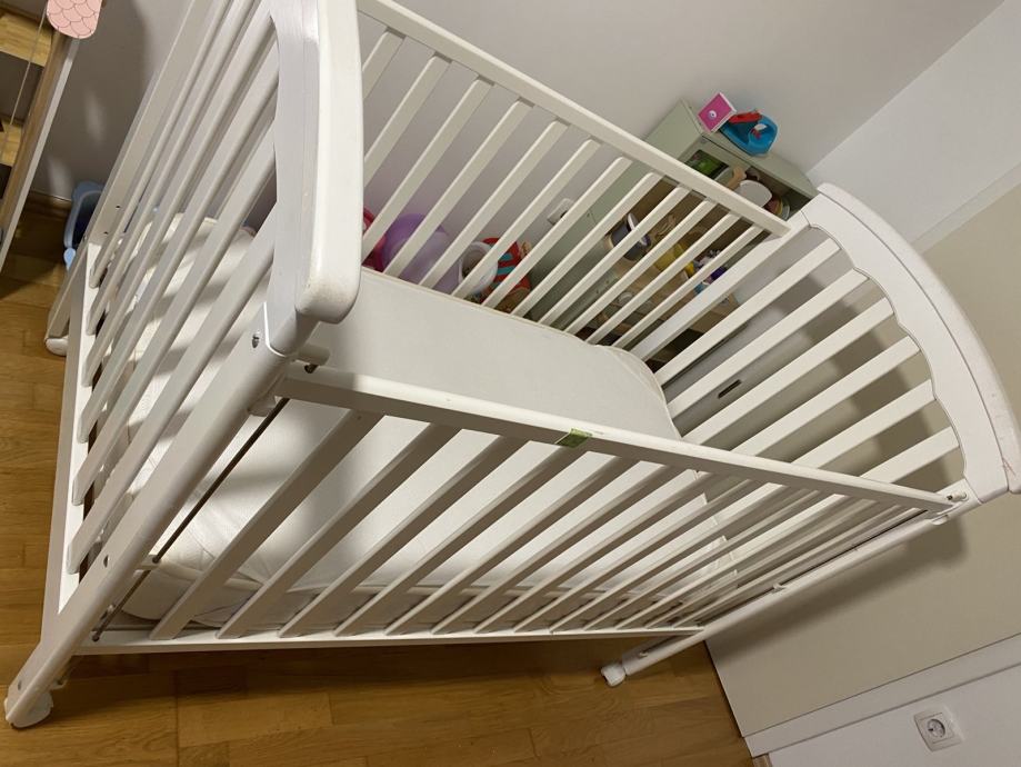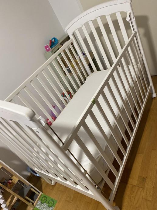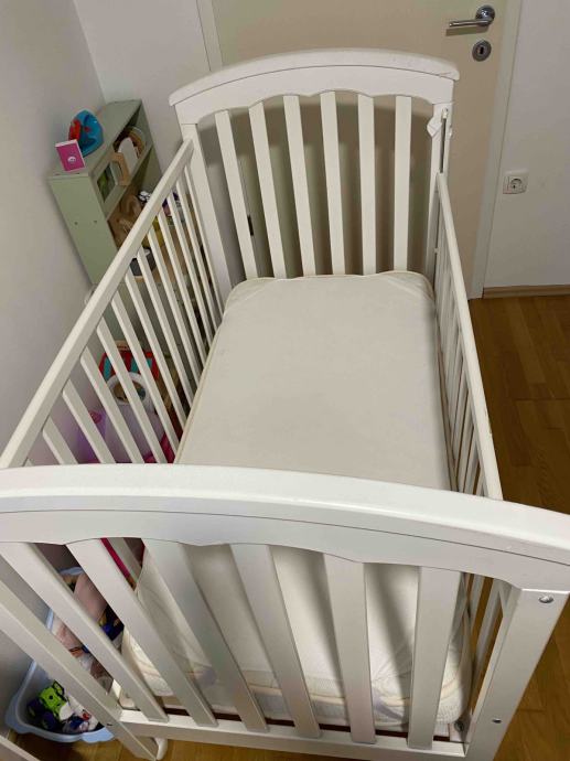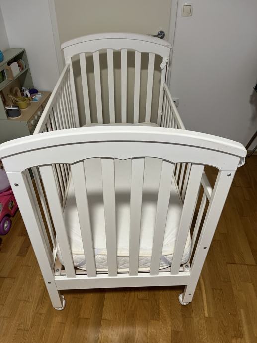 Ugodno prodam otroško posteljico v beli barvi. Zraven dodam še vzmetnico. Stranica se lahko zbiža za lažji dostop do otroka. Posteljica je na kolesih in je tudi že rastavljena. Mere: 125cmx65cm