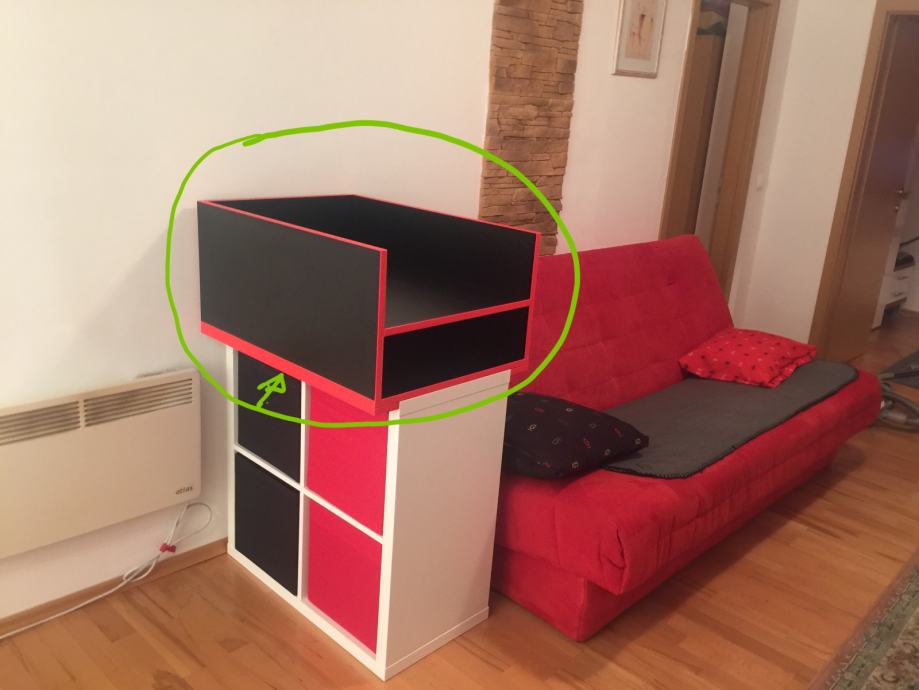 Previjalna miza narejena za postavitev na IKEA Kellax regal. Izredno uporabno! Izdelana iz lesa.