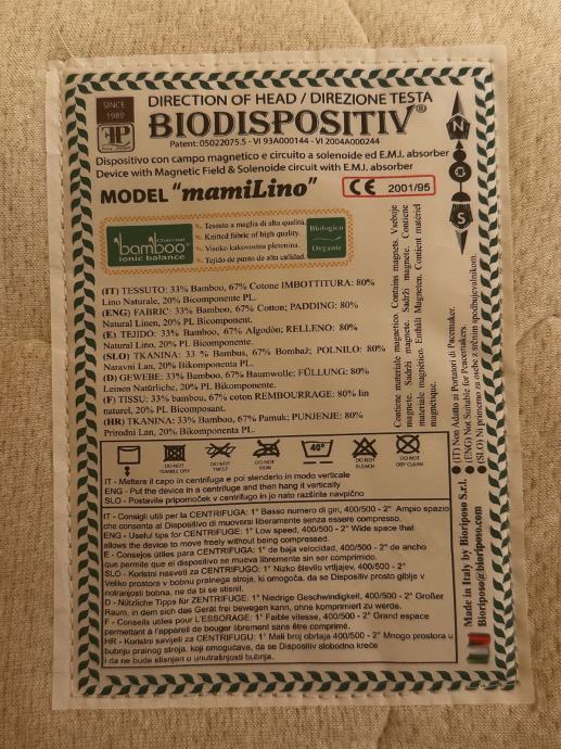 Prodam posteljni nadvložek BIODISPOZITIV full-point patent antenna.Namenjen je spanju, ki ima VLOGO: Razstrupljanja, Popravila in Regeneracije vsake celice v našem telesu. Magnetna terapija in zaščita pred geopatogenimi in neioniziranimi sevanji, deluje sicer v dveh stopnjah. Na prvi stopnji deluje na * aksialno magnetno polje Sever jug (po zakonu Hartmann); na drugi stopnji je nameščen soleonid (E.M.I. Absorber, absorber elektromagnetnih polj) in z zunanje strani vidna antena Omega.
