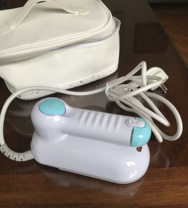 Prodam parni potovalni likalnik v torbici. Dolg je 16 centimetriv. Praktično je nov, skoraj nerabljen. Za lažje shranjevanje na potovanjih je shranjen v primerni toaletni torbici.