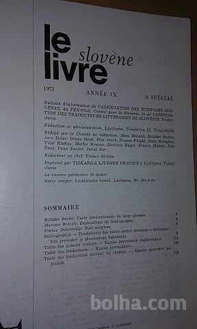 Založništvo in izdelava Ljubljana : L'Association des écrivains slovènes : Pen-Club : L'Association des traducteurs littéraires de Slovénie, 1971 (v Ljubljani : Ljudska pravica)