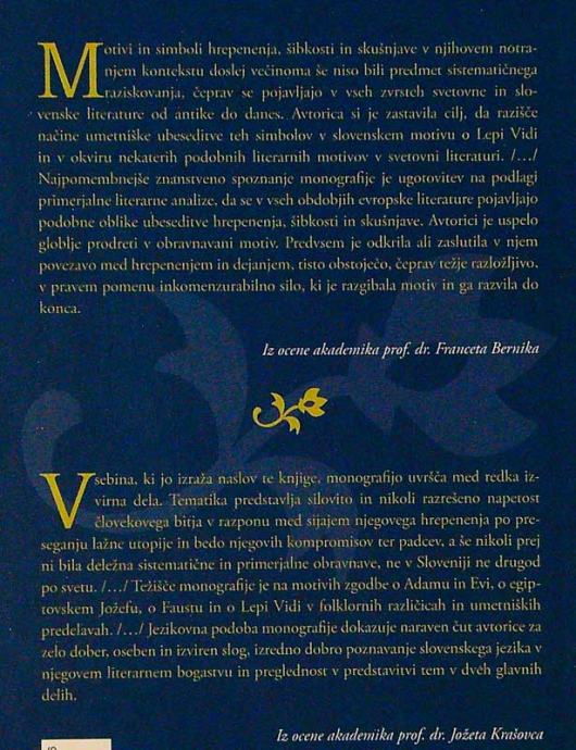 HREPENENJE IN SKUŠNJAVA V SVETU LITERATURE; MOTIV LEPE VIDE, Irena Avs