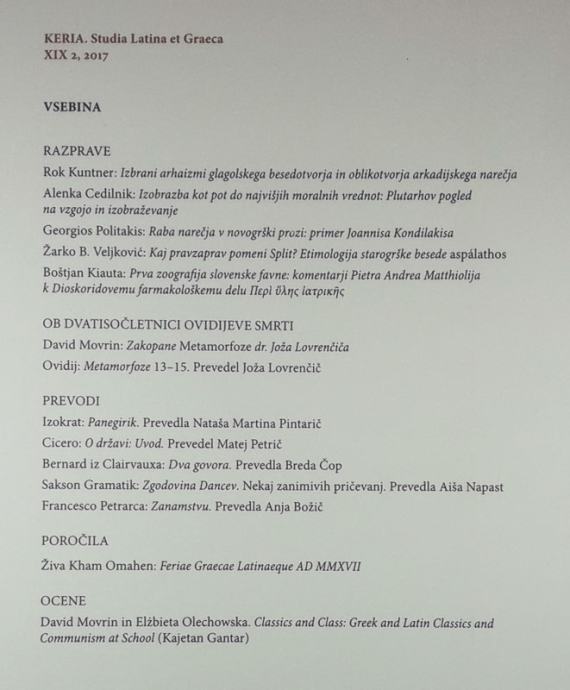 KERIA; STUDIA LATINA ET GRAECA, več avtorjev
