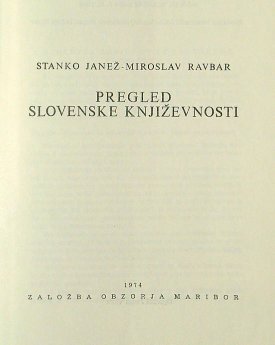 PREGLED SLOVENSKE KNJIŽEVNOSTI, Stanko Janež in Miroslav Ravbar