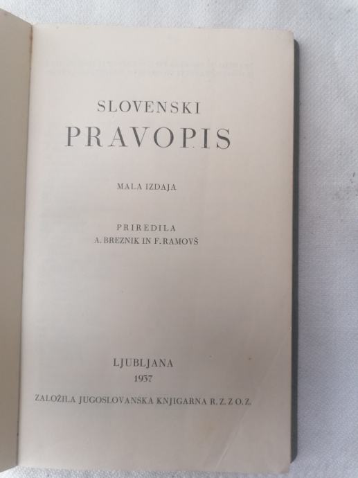 Na voljo je lepo ohranjena knjiga SLOVENSKI PRAVOPIS, priredila A.Breznik in F. Ramovš,