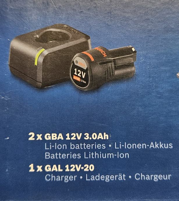 Prodam dve novi bateriji Bosch GBA 12V 3.0Ah in polnilec Bosch GAL 12v-20