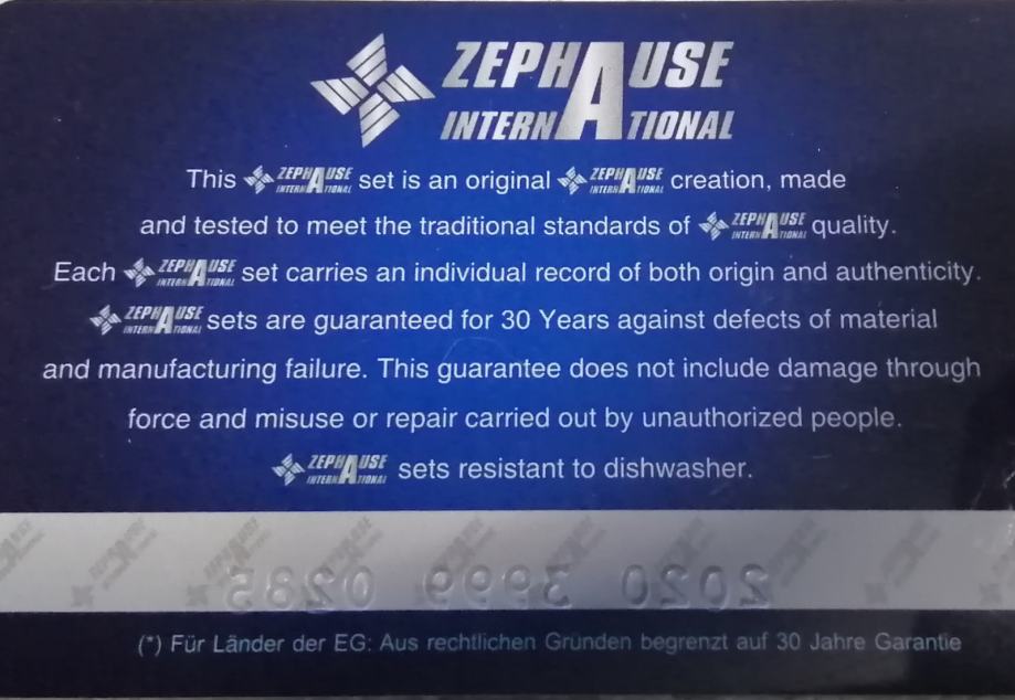 Vse skupaj 17 delov. Original Zephause internatinal zapakirano, nerabljeno, novo s certifikatom, vsemi dokumenzi.