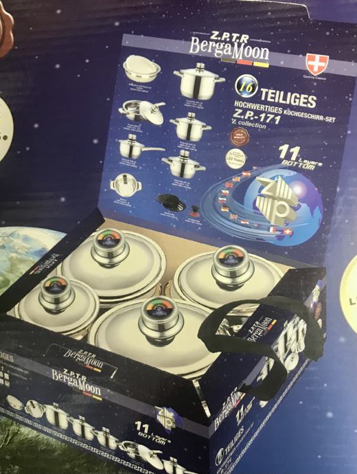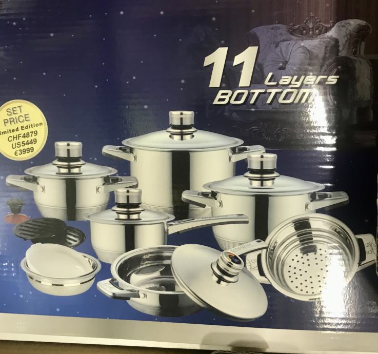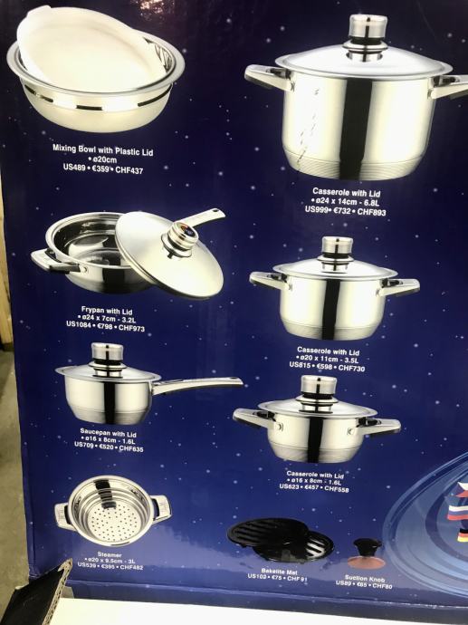 Popolnoma nov komplet posode iz masivnega nerjavečeg jekla, termostatski pokrovi, primerno za vse kuhalne površine. Vrhunska posoda, ki bo trajala. Podrobnosti poglejte na slikah. Maribor.