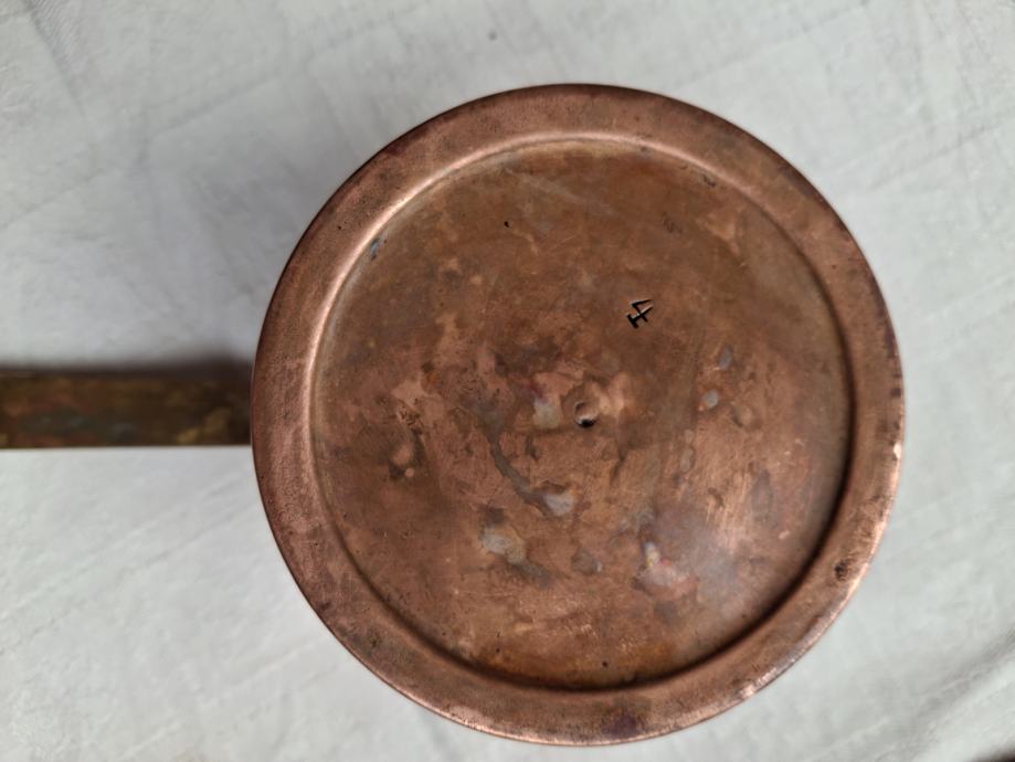 Džezva za kavo visoka pribl 9cm, širina dna 9,5 cm, drži pribl 1,5 dl. Bakrena.