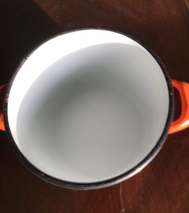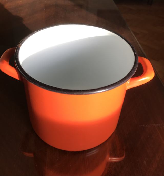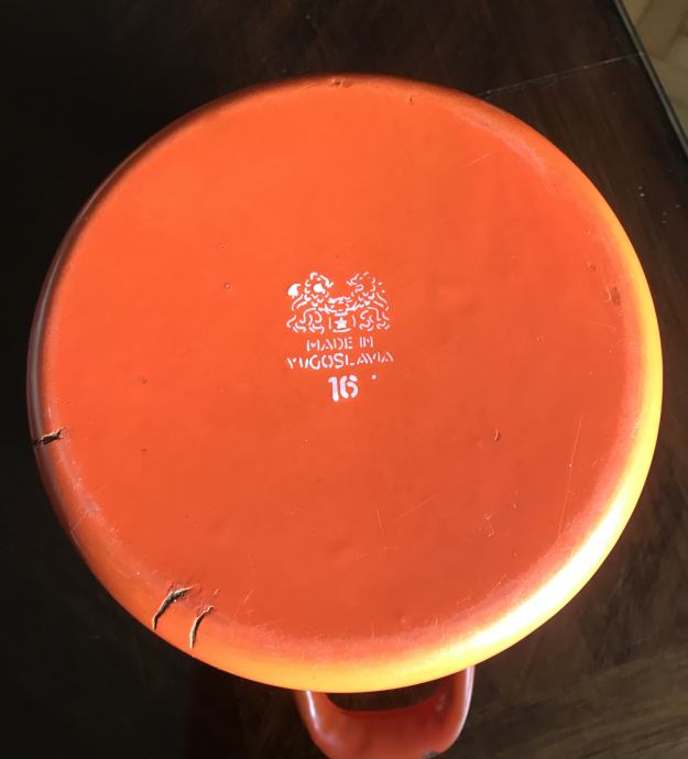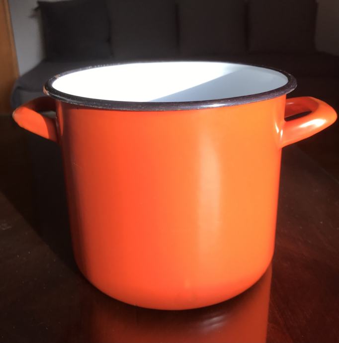 Prodam ohranjen emajliran triliterski lonec oranžne barve Emo Celje.