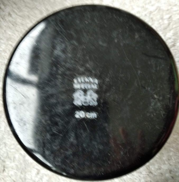 Večji: širok 22 cm, visok 20 cm. Na notranji strani, na dnu malo okrušen (na fotografiji).