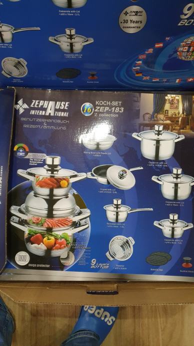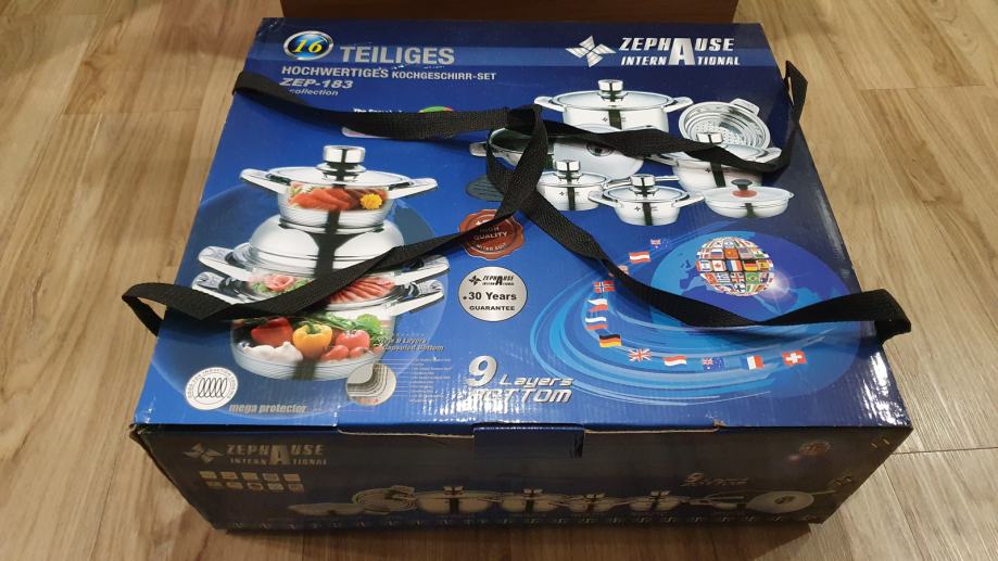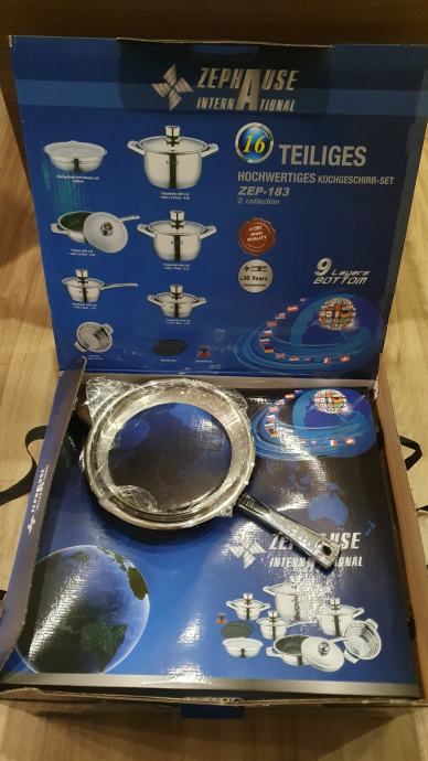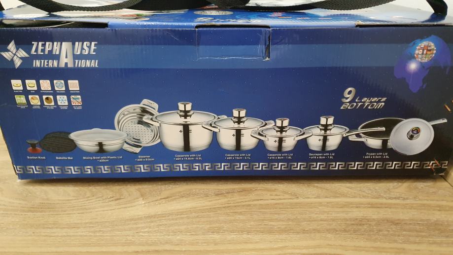 Prodam komplet Zephause International posod, ki vsebuje 17 delov. Primeren je za vse vrste kuhinjskih plošč (plin, elektrika, indukcija).