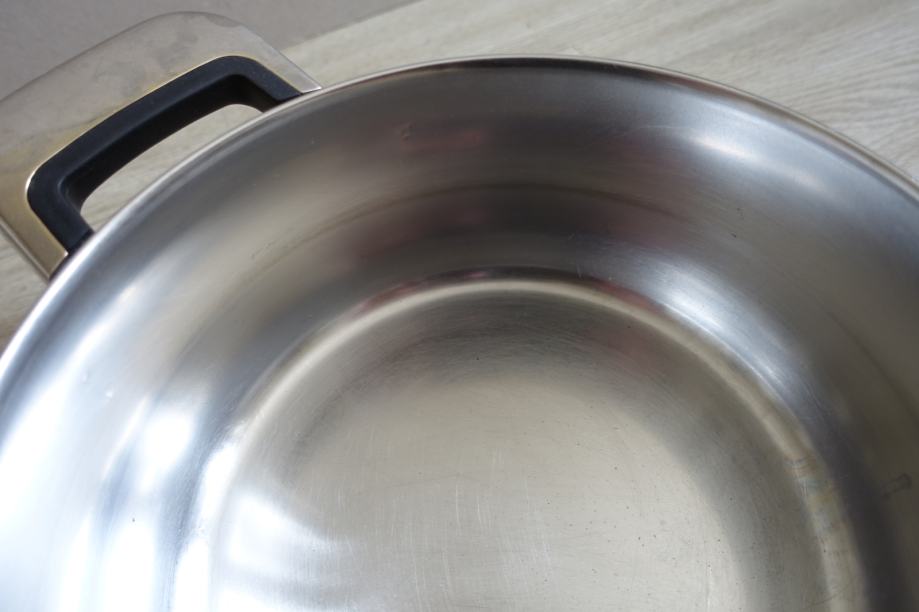 Kvalitetna posoda, nekaj manjših sledi uporabe, za indukcijo ni primerna.