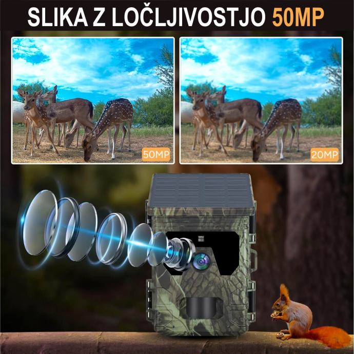 Kamera je opremljena z **vgrajeno litijevo baterijo** in **integriranim solarnim modulom**, ki skupaj zagotavljata dolgo delovanje brez nadzora. Dodatno lahko vstavite 4x AA baterije in še podaljšate avtonomijo. Rezultat? Tedni, celo meseci neprekinjenega nadzora.