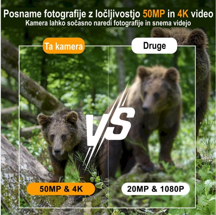 • ✅ **Shranjevanje na SD kartico do 256 GB** – v paketu že vključena 64 GB kartica (100 MB/s)