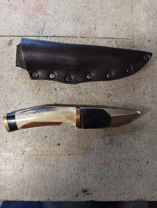 Prodam lovski nož kovan ročno delo material c440 dolžina rezila 10cm ročaj jelenov rog 031 592600
