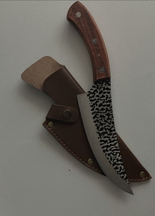 Prodam nerabljen nož. Ročno izdelan.Nerjaveče jeklo. Zraven tudi kožni etui. Nož je nabrušen in oster kot britev.
