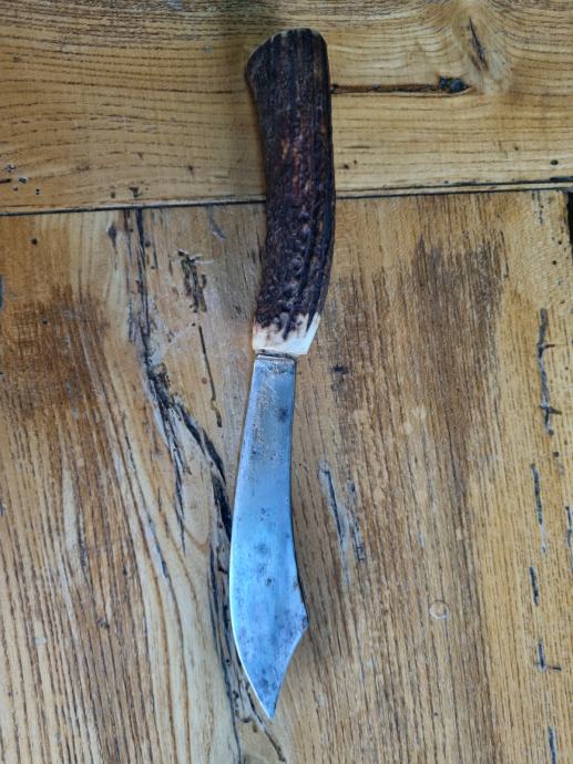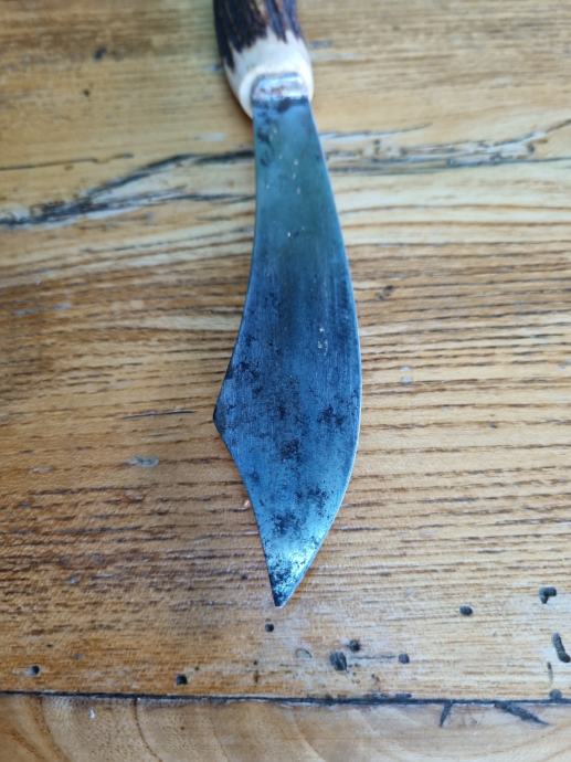 Ročaj iz roževine jelena, medeninasti zaključek na držalu zelo oster, brezhiben, vsestransko uporaben - tudi za britje, zbirateljski kos