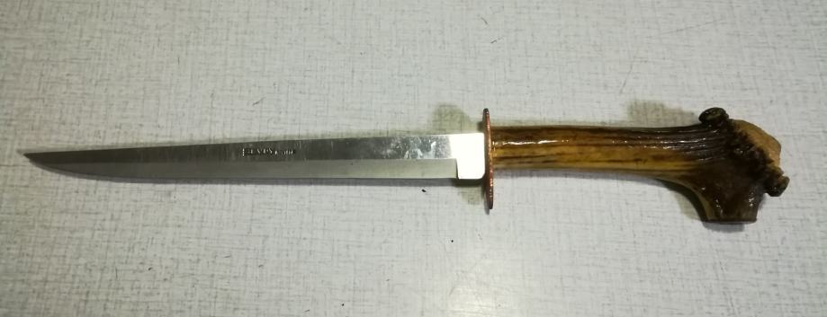 Prodam nož za rezanje pršuta, salam z ročajem iz jelenovega roga in rezilom iz nerjavečega kvalitetnega jekla :