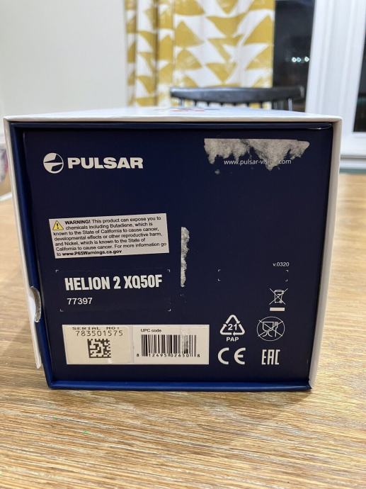 Pulsar Helion 2 XQ50F. Kupljeno leta 2023. Od nakupa so vključeni vsi originalni predmeti. Deluje odlično. Skoraj nikoli uporabljen, večinoma leži v sefu za orožje.