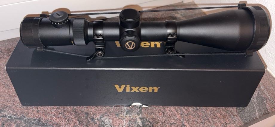Prodajam kvaliteten strelni daljnogled Vixen German 4 z nastavljivo povečavo 2,5-10x in premerom leče 56 mm, primeren za lovsko uporabo. Daljnogled ima vodoodporno zaščito in večslojno prevlečeno optiko za optimalno jasnost pogleda. Priložena je originalna embalaža, daljnogled pa je v odličnem stanju.