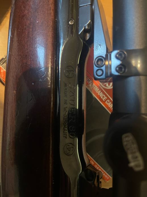 Sauer 80, kaliber 9,3x64, optika Meopta Meostar R1 1-4x22 RD, navojna montaža, rezervno kopito, 80 nabojev. Stanje 10/10. Puška se prodaja samo imetnikom dovoljenja za nakup orožja.