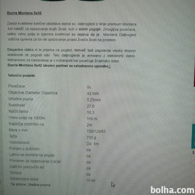 Če katerega-katero zanima prodam NOV dvogled BURRIS Montana 8x42. Cena po dogovoru.