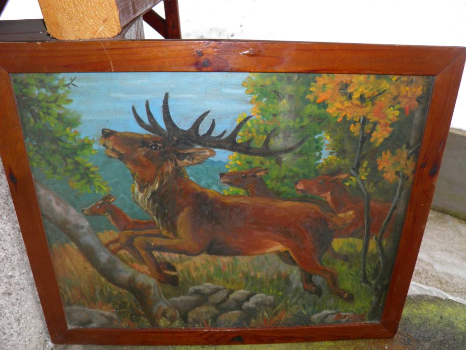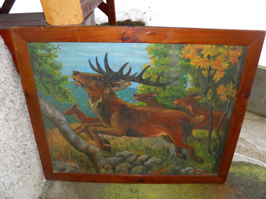Prodam sliko z lovskim motivom, tehnika: Olje na leseno ploščo, okvir je v slabš. stanju.Dimenzij: 65 x 54 cm. Lep motiv za darilo oz. lovsko sobo. Po želji in za doplačilo dodam nov okvir.