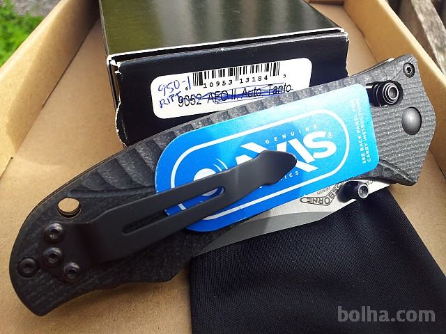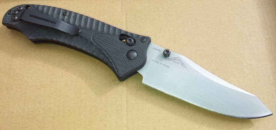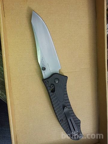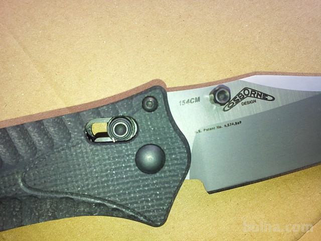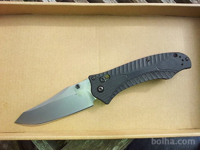 Prepoznavna in uporabna eksotika - oblika rezila, ki se je nikoli ne naveličaš v kombinaciji z odlično Benchmadeovo zaporo rezila Axis Lock - nož je zasnoval Warren Osborne, Benchmade pa prispeval brezhibno tehnično izvedbo. Rezilo je iz žilavega Crucibleovega jekla 154CM, dolgo 9,32 cm, ročajni platnici iz tridimenzionalno rezkanega G10 za absolutno nedrseč oprijem. Nosi se lahko levo ali desno s konico navzgor. Za odpiranje ima rezilo prečni zatič, ki pa je zaradi gladkega odpiranja zapore AXIS skoraj odveč. Noža v tej izvedbi že nekaj let ne izdelujejo več (vintage 2008). Ni bil uporabljan ali nošen = nov.