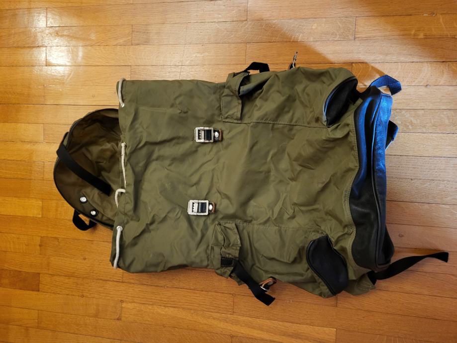 Prodan retro zelen nahrbtni, lepo ohranjen, malo nošen, črni spodnji deli so usnjeni, ojačan.