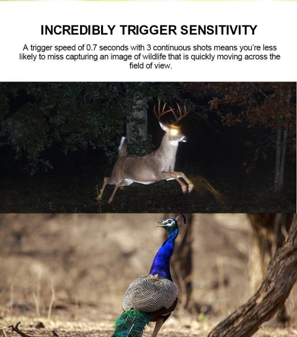 ODLIČNA VARNOSTNA KAMERA ZA LOV ALI VAROVANJE HIŠ, STANOVANJ, VIKENDOV, AVTOMOBILOV ITD. AVTOMATSKO POSNAME STORILCA, KO ZAZNA GIBANJE V VAROVANEM OBMOČJU. NAREDI VRHUNSKO SLIKO 32MP IN VRHUNSKI POSNETEK V LOČLJIVOSTI FULL HD 1080p. DELUJE NA BATERIJE, KAR VAM OMOGOČA MONTAŽO KJERKOLI!